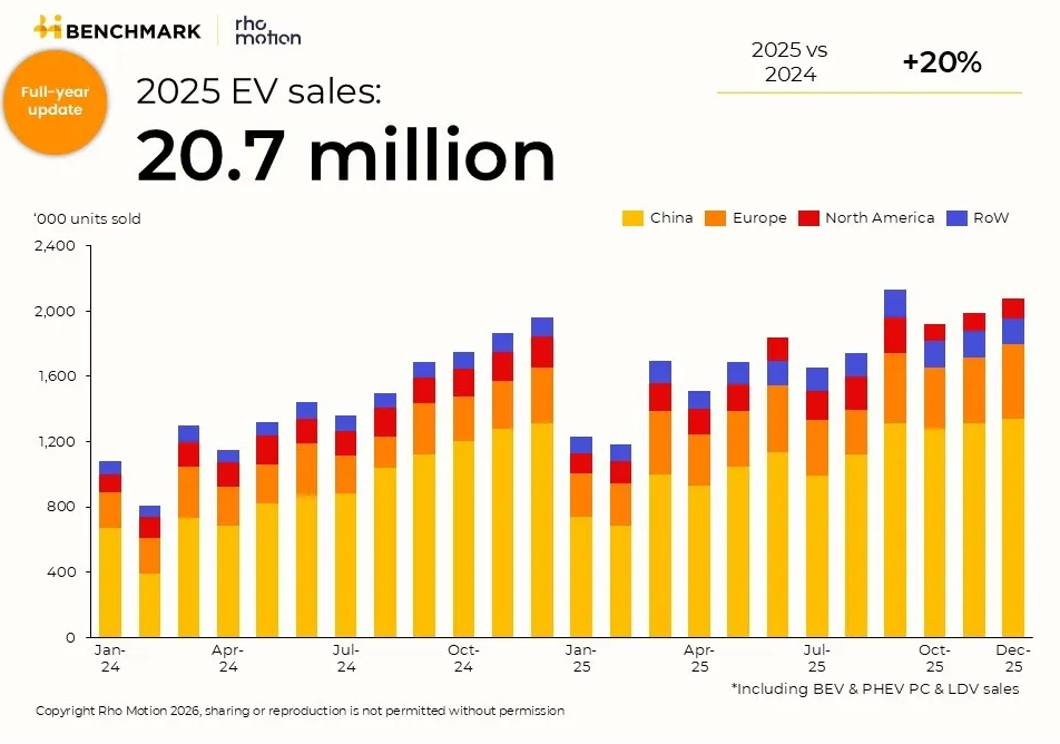 Globally, EV sales went up 20% to 20.7 million. North America saw a 4% decrease